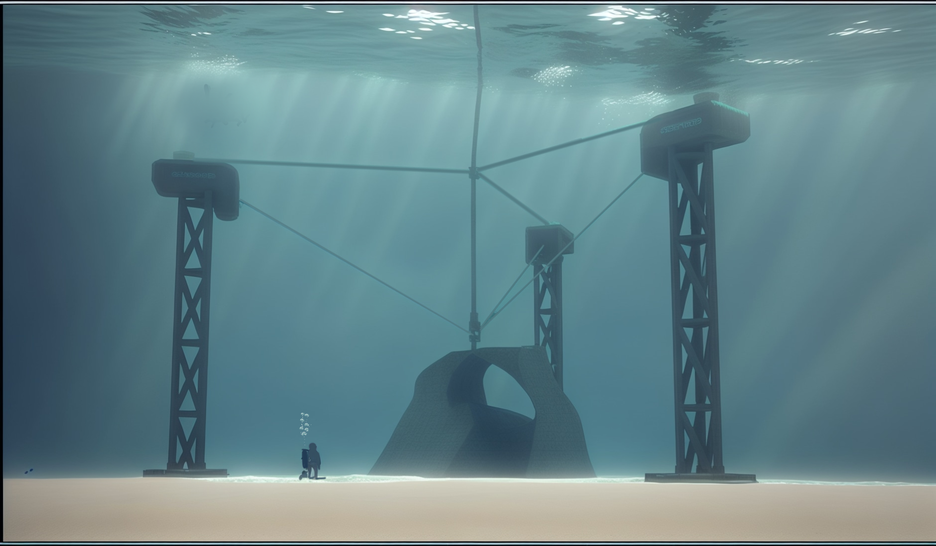 Divers equipped with special equipment dive to assemble the device.